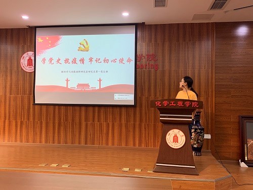 2020年07月06日19:00,膜科学与功能材料研究室研究生第一、二党支部在永利官网313召开“学党史 抗疫情 牢记初心使命”组织生活会,会议由支部书记李新娇同志和文国宇同志主持召开,谭昕玥同志作为本次组织生活会宣讲员。