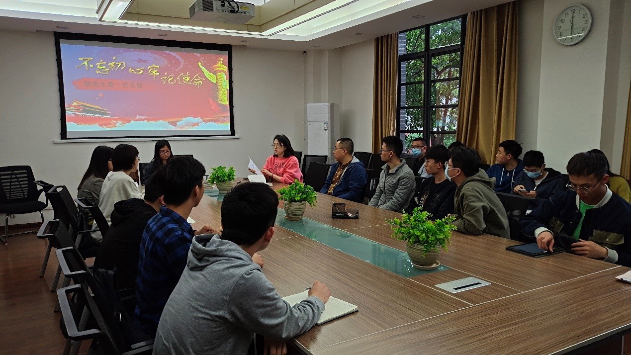 2021年4月8日傍晚6点,四川大学永利官网研究生第一党支部在永利官网227会议室召开了党员大会暨党史专题学习会。此次会议共有39位同学参加,其中正式党员28名,预备党员3名,积极分子8名。本次会议由党支部书记李颖丽同志主持召开。