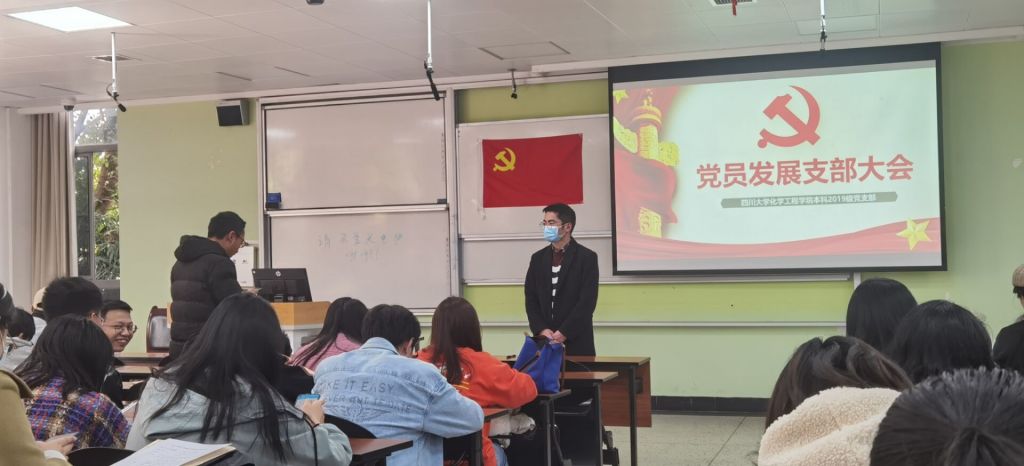 2022年3月4日下午14:00,在江安校区第一教学楼B做107教室,四川大学永利官网本科2019级党支部召开2021年度民主评议会暨发展洪逸航等二十四位同志为预备党员的